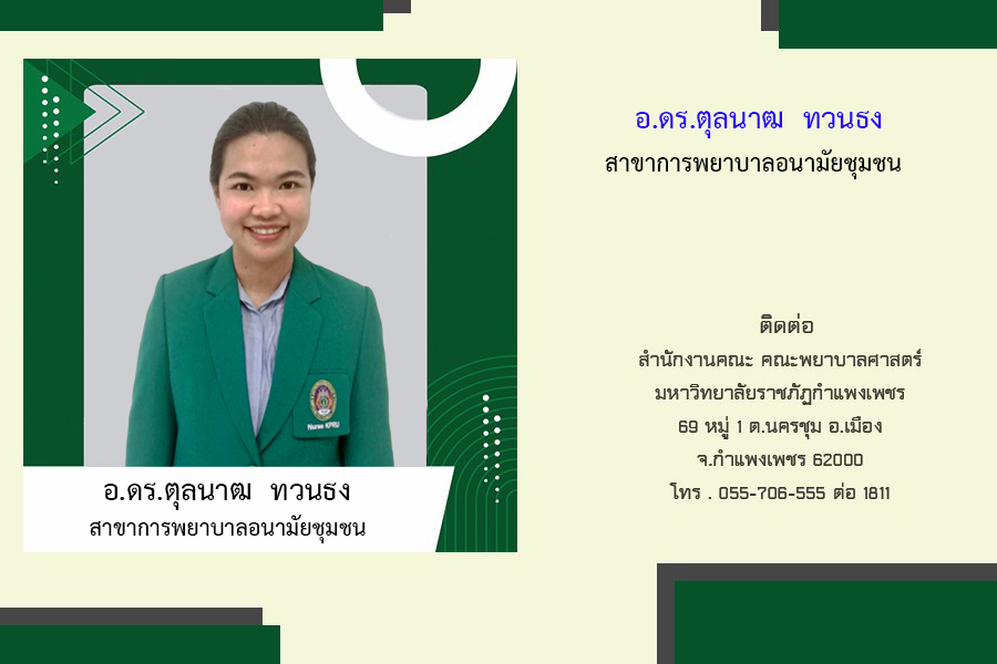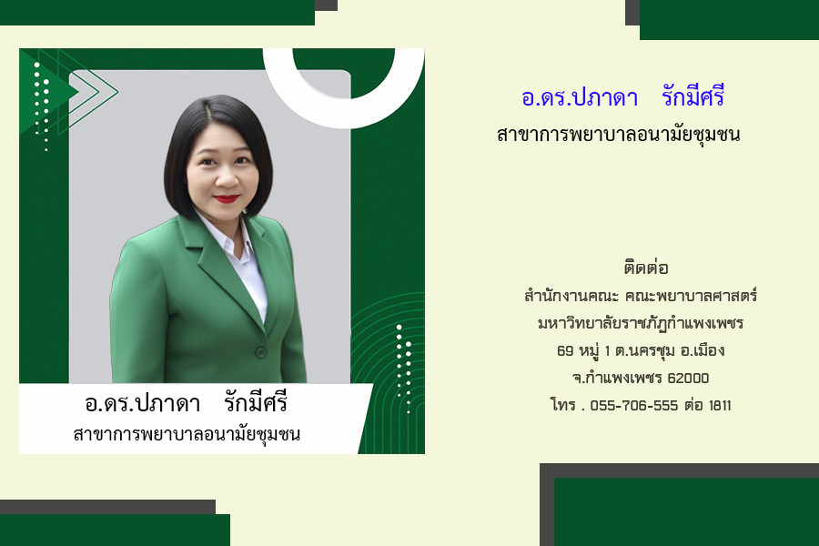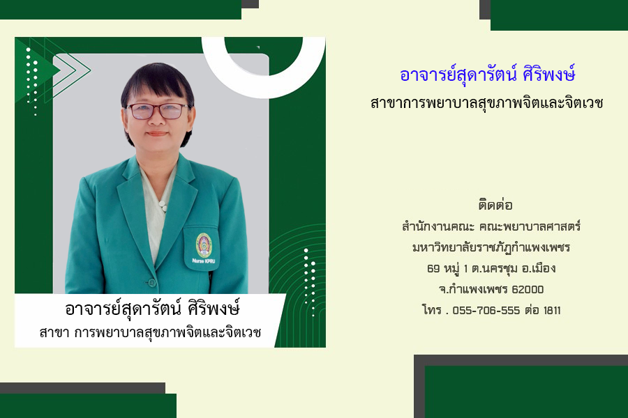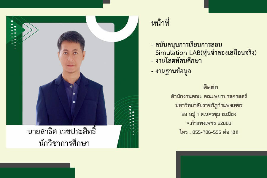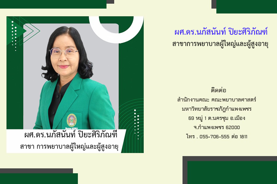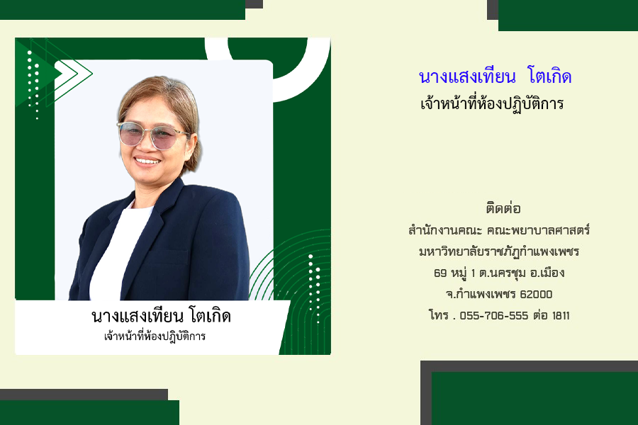 คณะพยาบาลศาสตร์ มหาวิทยาลัยราชภัฏกำแพงเพชร. (2566). ข้อมูลบุคลากร. สืบค้น 3 ธันวาคม 2568, จาก https://nurse.kpru.ac.th/?lang=TH&page_id=106