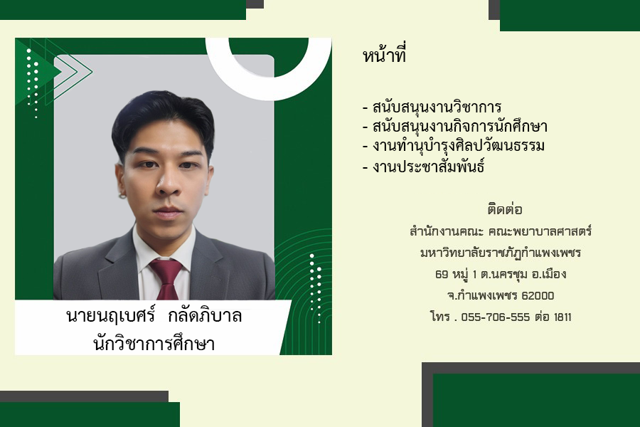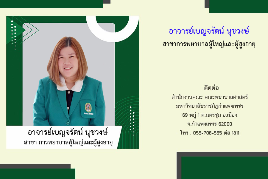 . (2566). ข้อมูลบุคลากร. สืบค้น 25 ตุลาคม 2568, จาก https://nurse.kpru.ac.th/?lang=TH+&page_id=106